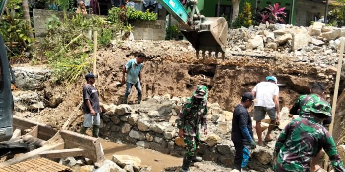 Peran Aktif Babinsa Koramil Tabongo Dampingi Pembangunan Jembatan Gantung Di Wilayah Binaan