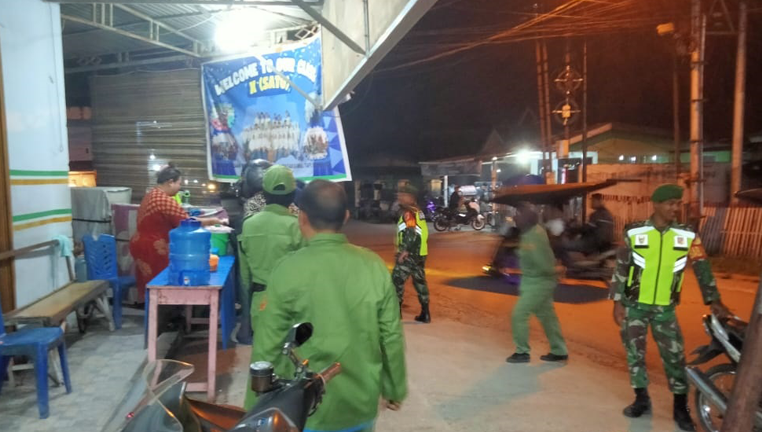 Usai apel, tim patroli langsung bergerak menuju titik sasaran pertama. Tepat pukul 19.40 Wita, personel menyusuri kompleks Pasar Lama Desa Hutadaa, Kecamatan Telaga Jaya, Kabupaten Gorontalo. Wilayah pasar yang biasanya ramai di siang hari kini tampak lengang, dan patroli berjalan dalam kondisi aman terkendali.