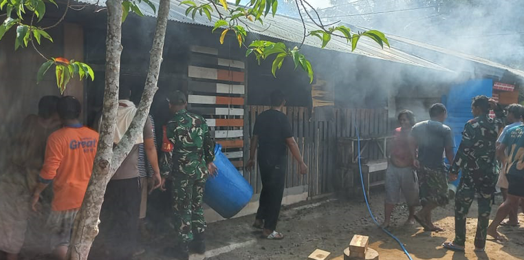 Tak lama kemudian, Babinsa Praka M. Nurrochim tiba di lokasi. Ia berkoordinasi dengan aparat desa dan membantu memadamkan sisa api. Selain itu, ia menenangkan warga agar situasi kembali kondusif dan aman.