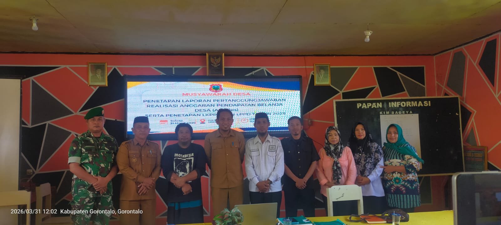 Gorontalo, 31 Maret 2026 –Musyawarah Desa dalam rangka penetapan laporan keuangan Desa Haya-Haya tahun 2025 berlangsung tertib dan kondusif. Kehadiran Babinsa Serma A. Tumongka bersama unsur pemerintah desa serta warga menambah kekompakan kegiatan. Selain menjadi ruang evaluasi anggaran, kegiatan ini juga menjadi bentuk keterbukaan informasi publik. Dengan begitu, pengelolaan dana desa mendapat dukungan penuh dari masyarakat.