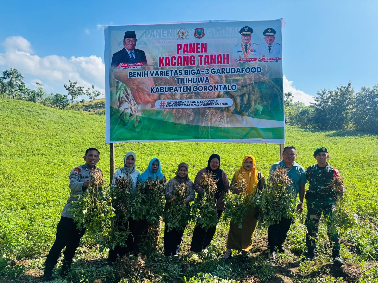 Babinsa Koramil 1315-02 Limboto Ikut Serta Dalam Panen Kacang Tanah Varietas Biga 3 Bersama Bupati