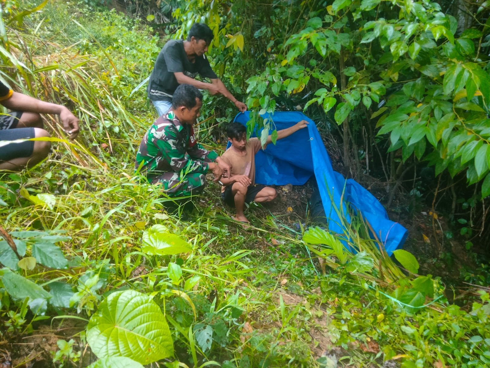 Babinsa Koramil 1315-02 Limboto Tanggap Warga Laporkan Penemuan Mayat Hilang Lima Hari Evakuasi Dilaksanakan Cepat