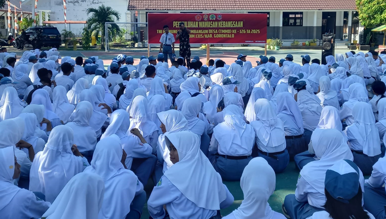 Kedatangan Dandim bukan dalam urusan militer, melainkan sebagai penggerak semangat nasionalisme. Dalam rangka TMMD ke-126 Tahun 2025, beliau memberikan penyuluhan Wawasan Kebangsaan kepada para pelajar. Kegiatan yang dimulai pukul 07.50 Wita itu dihadiri Kepala Sekolah Drs. Tisno Musa, M.Pd., guru, dan personel Kodim 1315/Kabupaten Gorontalo.
