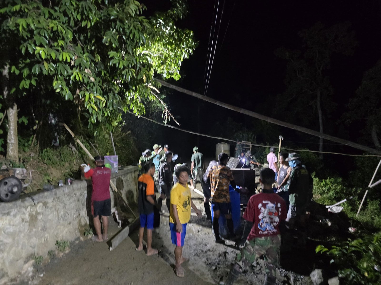 Selanjutnya, koordinasi berjalan tanpa henti sejak pagi hingga malam. Tim meratakan tanah, tim lain menata material, anggota lain menyiapkan logistik. Begitu hujan reda, pekerjaan dilanjutkan, membentuk ritme kerja produktif yang diselingi tawa ringan.