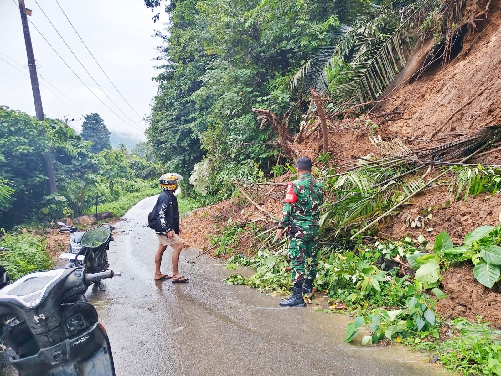 Hujan yang belum reda membuat pembersihan material longsor belum dapat terlaksana. Namun, kehadiran Babinsa di tengah warga menjadi bukti kepedulian dan kesiapsiagaan aparat TNI. Ia hadir bukan hanya memantau keadaan, tetapi juga memberi ketenangan agar masyarakat tidak panik menghadapi bencana.