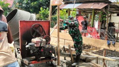 Gorontalo, 18 April 2026 – Personel Koramil 1315-01/Telaga turun langsung ke lapangan guna mempercepat pembangunan Jembatan Perintis Garuda di Desa Ulapato B. Kehadiran aparat teritorial memberi dorongan nyata bagi para pekerja. Selain itu, kerja sama antara TNI dan masyarakat terlihat semakin solid dalam setiap proses pekerjaan.