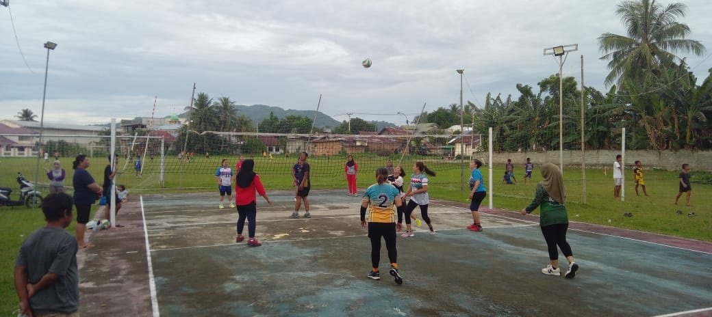 Kegiatan berlangsung meriah dengan kehadiran Ny. Liwang, Ketua Ranting 03/Limboto, yang ikut bermain langsung di lapangan. Kehadirannya menambah semangat para anggota, sementara Sertu Amirul, Babinsa 02/Limboto, memberikan arahan teknik voli dengan sabar dan ramah.