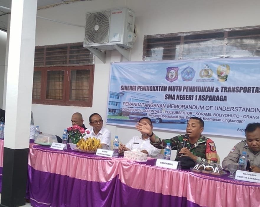 Gorontalo, 11 Februari 2026 — Kegiatan penandatanganan MOU penegakan disiplin siswa berlangsung penuh semangat di SMA Negeri 1 Asparaga. Babinsa Serka Laode Kalawara hadir mewakili Danramil 1315-05 Boliyohuto bersama unsur pemerintahan daerah.