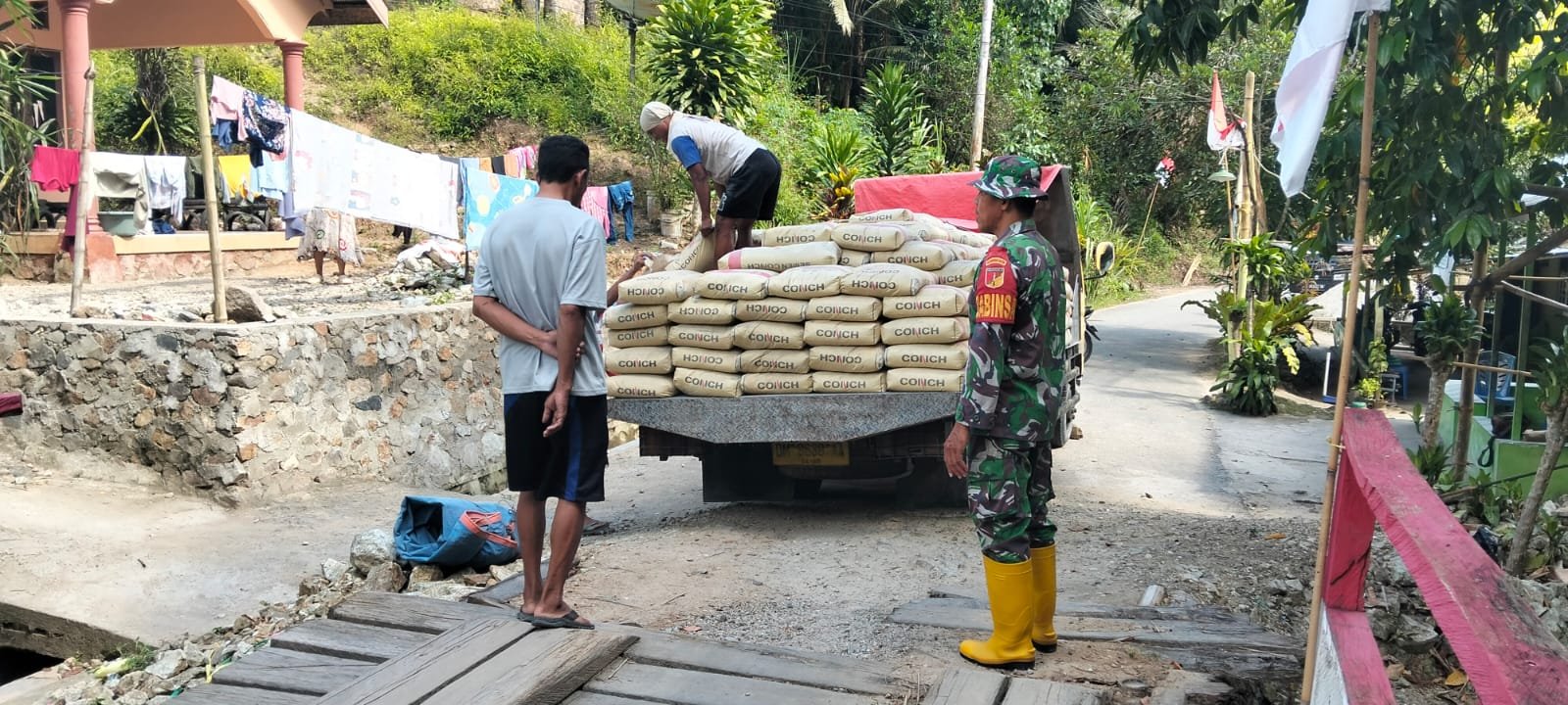Kegiatan Pendropan Material Jembatan Beton Desa Ulapato B Mendapat Pengawalan Babinsa Koramil 1315-01 Telaga