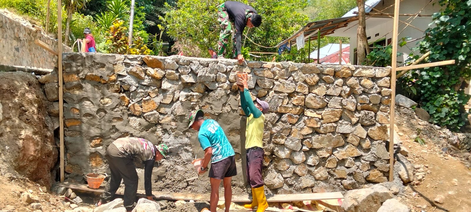 Kemudian, anggota Koramil 1315-01/Telaga turut serta dalam pendampingan pekerjaan bersama masyarakat. Keterlibatan tersebut memberi dorongan kuat bagi pelaksanaan kegiatan. Dengan demikian, proses pembangunan berjalan lebih cepat.