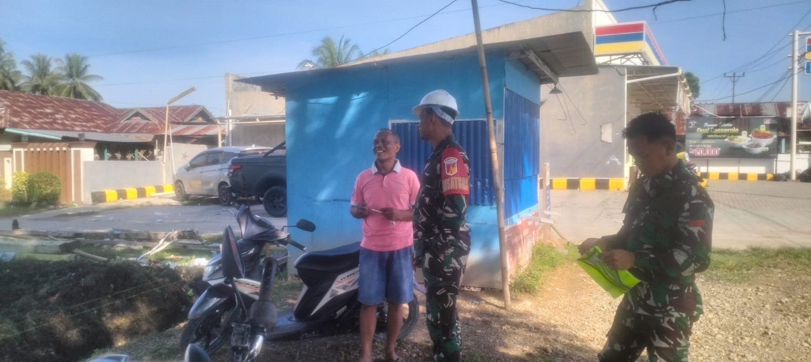 Kegiatan di mulai pukul 07.50 Wita, dengan Kepala Desa Isa Amir Hanafi, Babinsa Koptu Muhamad Setiawan, Batih Tuud Serka Suton Djabi, dan konsultan proyek Wahidin Ponto mendampingi. Mereka meninjau pondasi hingga struktur dasar bangunan.