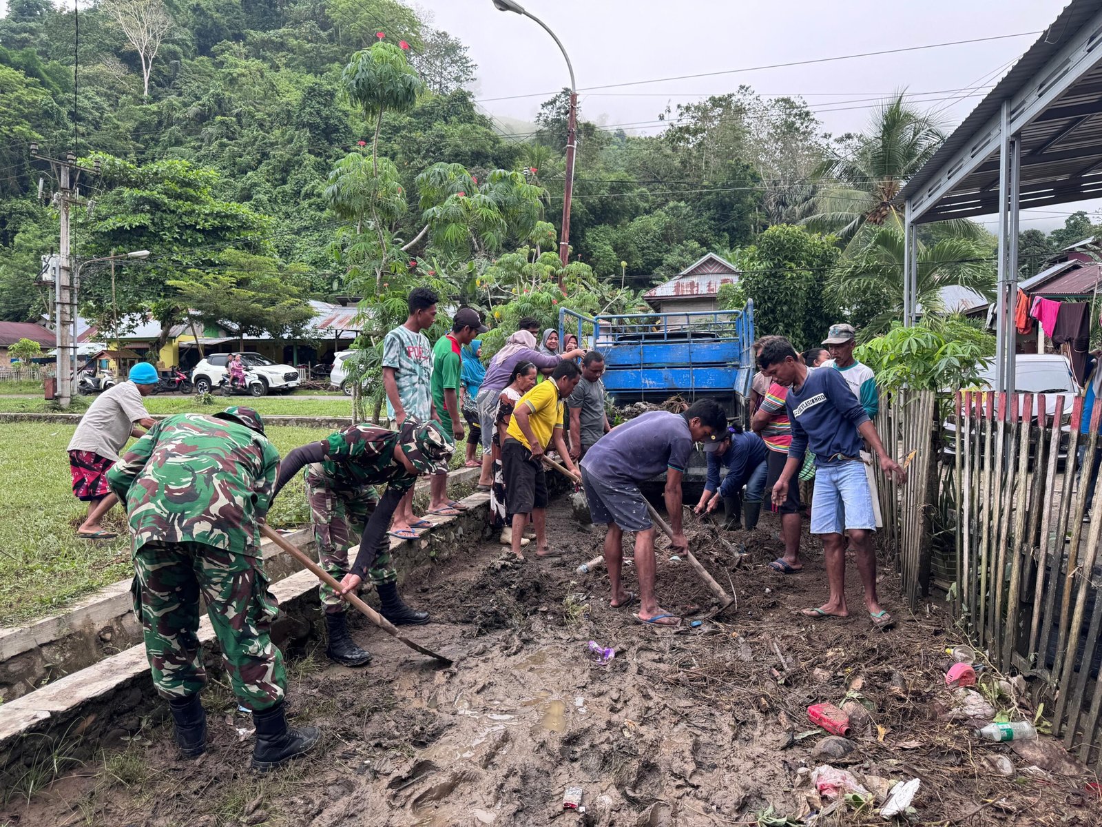 Semangat gotong royong terasa sejak awal kegiatan, selain itu para prajurit TNI, aparat pemerintah, dan warga bekerja bersama membersihkan lumpur dan material yang terbawa banjir, sehingga menunjukkan kepedulian nyata terhadap lingkungan sekitar.