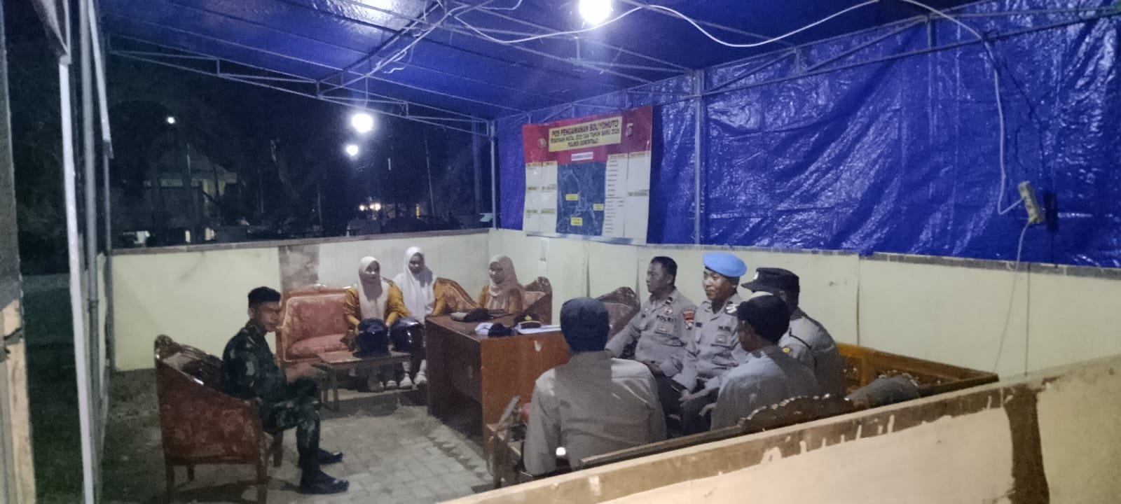 Gorontalo, 23 Desember 2025 – Serda Mirhan memimpin dua personel Koramil 1315-05/Boliyohuto pantau pengamanan Natal 2025 dan Tahun Baru 2026 Titik Pos Pam Simpang 3 Parungi. Malam itu, arus lalu lintas ramai karena warga bersiap merayakan akhir tahun.