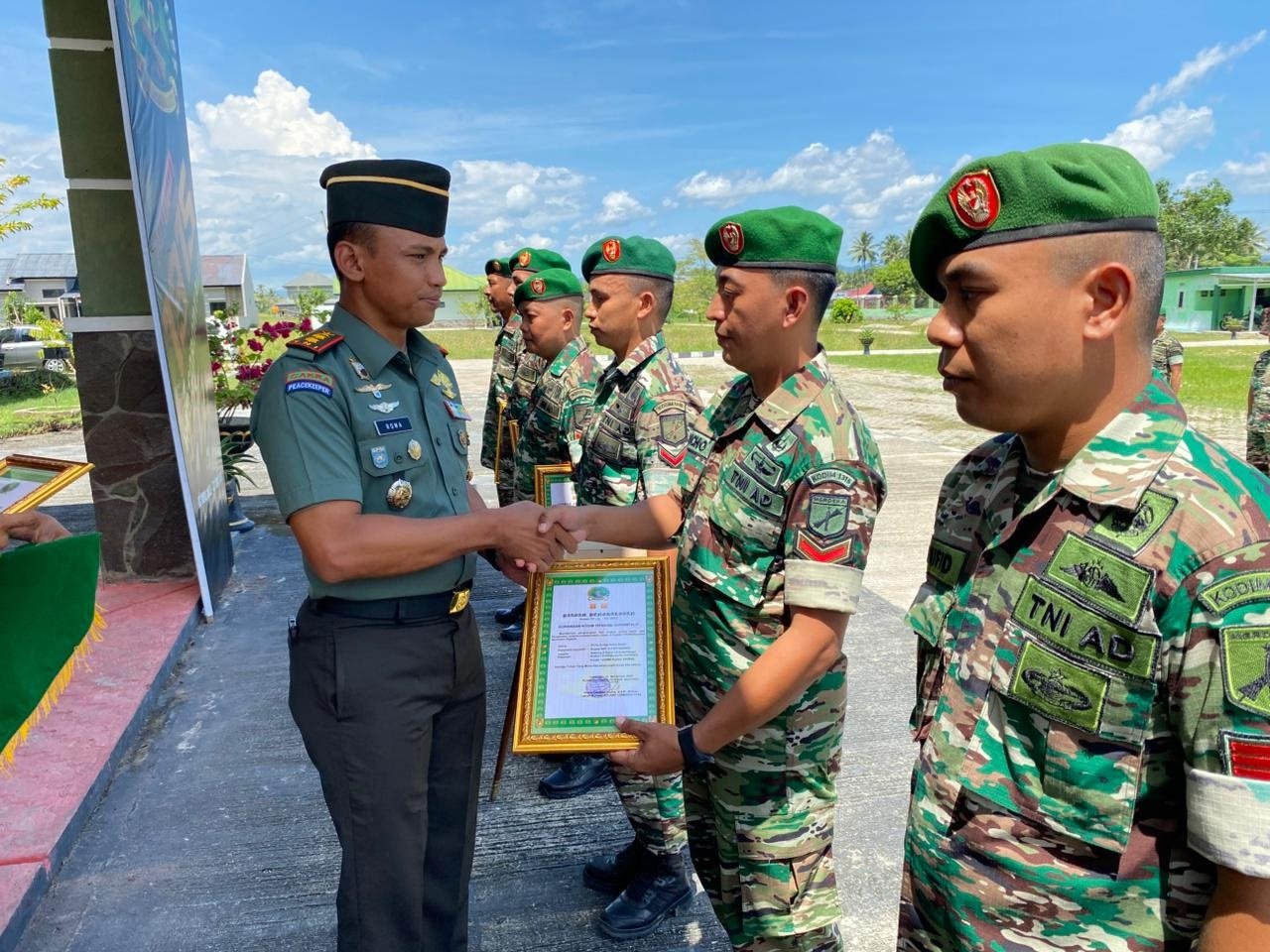Momen haru terasa saat Dandim menyerahkan penghargaan bagi personel yang berpindah. Ia menyampaikan terima kasih atas kerja keras mereka dalam pembinaan wilayah dan pelayanan masyarakat. Menurutnya, pengalaman tugas merupakan bekal berharga untuk pengabdian di masa mendatang.
