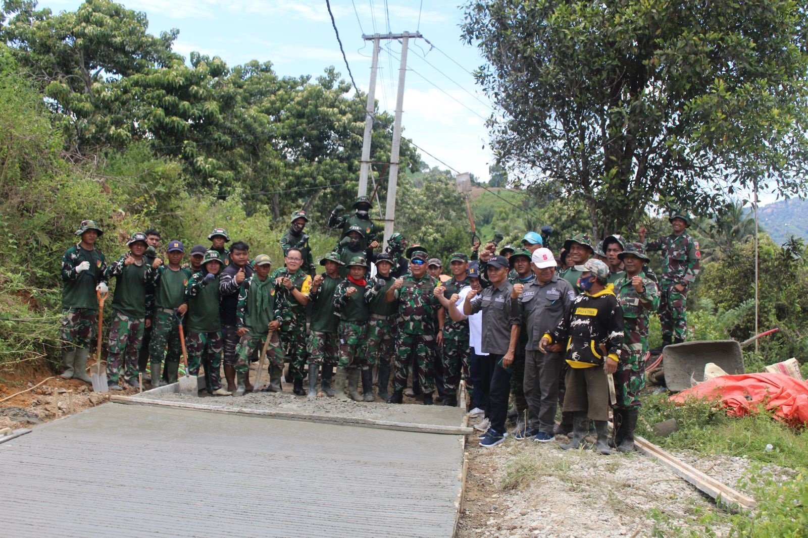 Pekerjaan berlangsung dengan semangat gotong royong. Prajurit TNI bersama warga menyiapkan material, mengaduk semen, dan menegakkan dinding. Tak ada jarak antara seragam loreng dan baju petani, semua larut dalam kerja ikhlas demi rumah yang lebih layak.