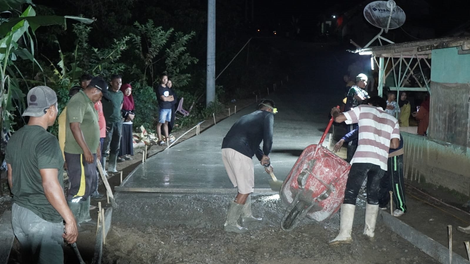 “Waktu tidak banyak, kami harus selesaikan semua,” ujar salah satu prajurit dengan tekad kuat. Lampu darurat tepasang di sepanjang jalur, sementara warga datang membawa air dan makanan. Malam itu, prajurit dan rakyat bekerja bersama tanpa sekat demi kemajuan desa.