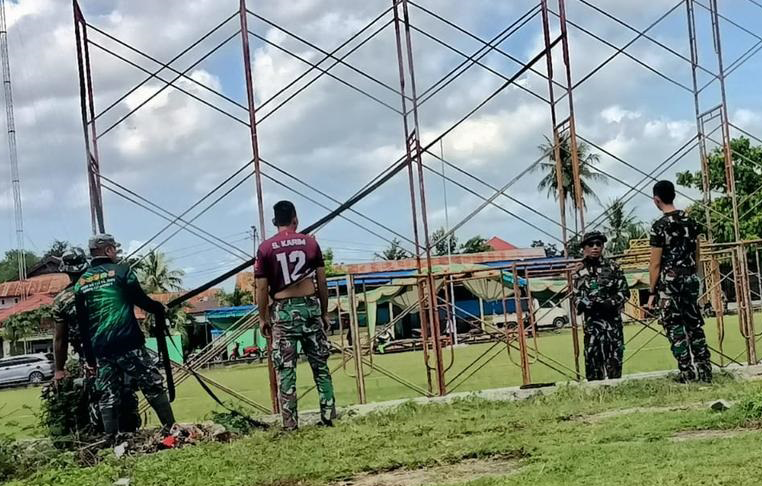 Di bawah terik matahari, prajurit bekerja tanpa henti. Gerakan mereka disiplin dan serius. Lapangan yang awalnya kosong perlahan menjadi pusat kegiatan penutupan TMMD.