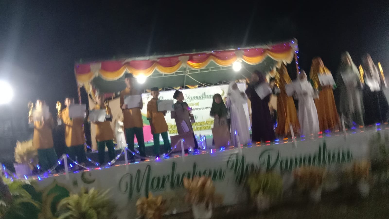 Berikutnya, panitia menyerahkan hadiah kepada para pemenang lomba Tahfiz Quran serta busana muslim. Penyerahan hadiah berlangsung bersama Camat Telaga Biru serta Kepala Desa Dumati. Dengan begitu, penghargaan tersebut menjadi bentuk apresiasi atas semangat para peserta.