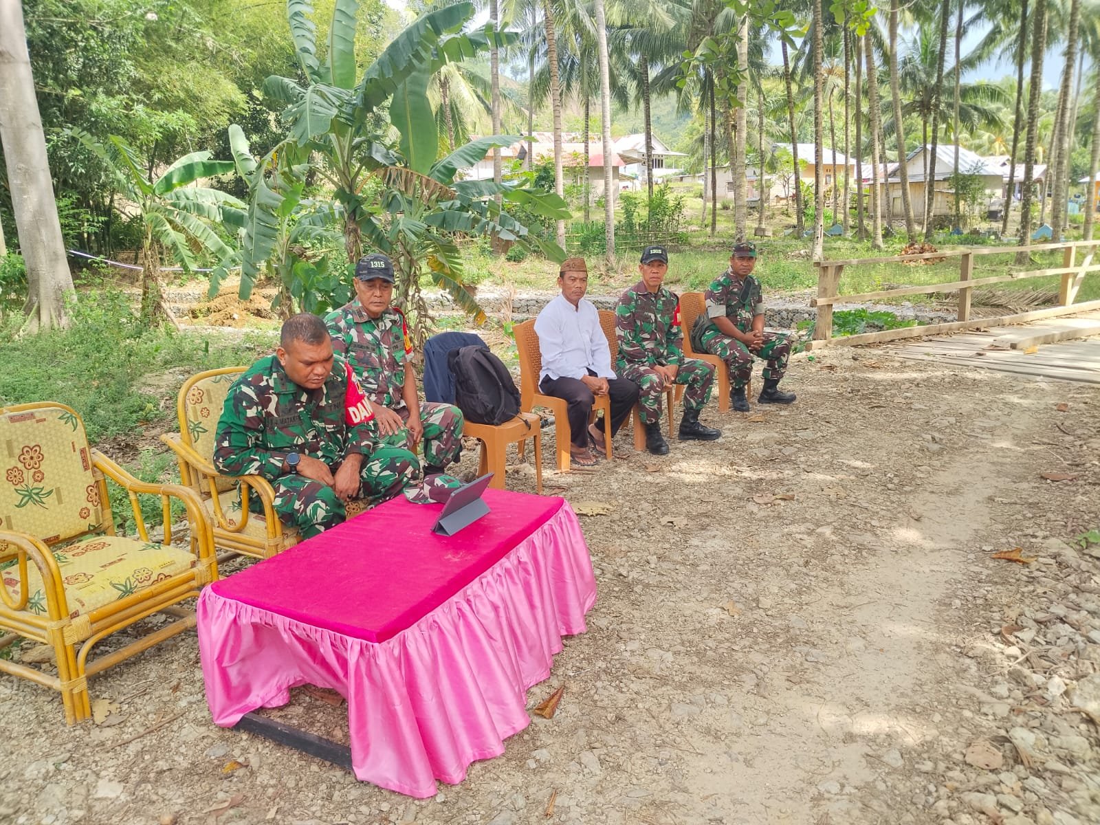 Gorontalo, 9 Maret 2026 – Launching 200 Titik Jembatan Garuda melalui kegiatan Vicon berlangsung pada Senin pukul 14.15 Wita di Dusun I Desa Ulapato B, Kecamatan Telaga Biru, Kabupaten Gorontalo. Komandan Kodim 1315 Kab. Gorontalo Letkol Inf. Julius Jongen Matakena, S.H. menghadiri kegiatan tersebut bersama unsur Koramil dan pemerintah desa. Sejak awal kegiatan, pembahasan berfokus pada rencana pembangunan jembatan bagi akses masyarakat.
