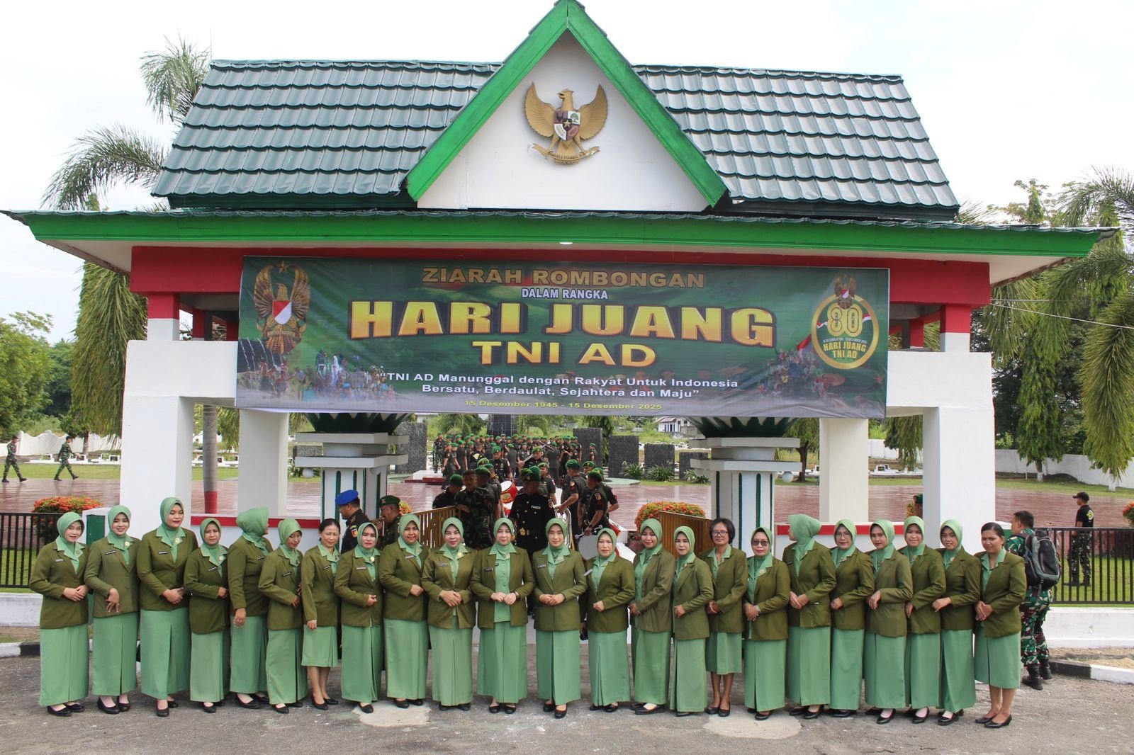 Gorontalo, 11 Desember 2025 – Ketua Persit Ny Nana Roma Laksana Yudha beserta jajaran Persit LXXIV KCK Cabang Kodim 1315 Kabupaten Gorontalo mengikuti kegiatan ziarah rombongan Hari Juang TNI AD ke-80. Kegiatan digelar di Taman Makam Pahlawan Desa Pentadio Kecamatan Telaga Biru Kabupaten Gorontalo pukul 08.15 Wita.