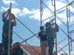 Telaga Biru, 05 November 2025 — Hujan deras membuat pengecoran jalan rabat beton Satgas TMMD ke-126 Kodim 1315/Kabupaten Gorontalo lambat. Proyek yang