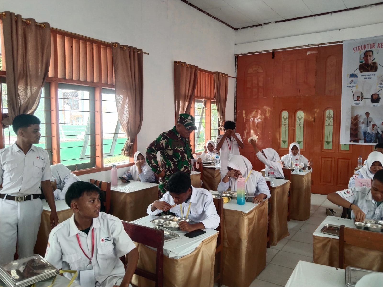 Gorontalo, 21 Januari 2026 – Sertu Ipon Towapa, Babinsa Koramil 1315-04/Tibawa, ikut mendampingi pelaksanaan Makan Bergizi Gratis bagi siswa di Kecamatan Tibawa, Kabupaten Gorontalo. Kegiatan ini menjadi wujud dukungan TNI terhadap program nasional peningkatan gizi anak sekolah.