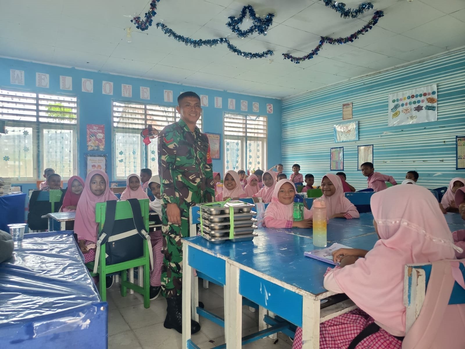 Gorontalo, 01 Desember 2025 — Kopda Bihanam Babinsa Koramil 1315-04 Tibawa mendampingi kegiatan Makan Bergizi Gratis bagi siswa wilayah Kecamatan Tibawa, Kabupaten Gorontalo. Kegiatan berlangsung pukul 08.00 Wita di beberapa sekolah wilayah Koramil 1315-04 Tibawa. Selain itu, kehadiran Babinsa memastikan program pemerintah berjalan tertib dan tepat sasaran.