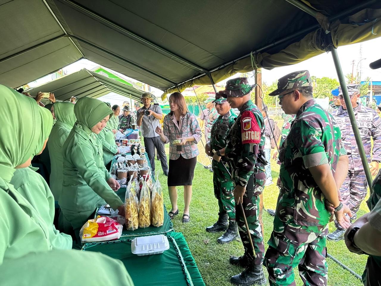 Anak-anak berlarian antara stan, sementara orang dewasa asyik memilih kuliner. Setiap sudut tampak teratur dan penuh warna. Dengan demikian, Persit tidak hanya mengatur bazar, tetapi juga mendampingi keluarga prajurit agar suasana tetap hangat dan menyenangkan.