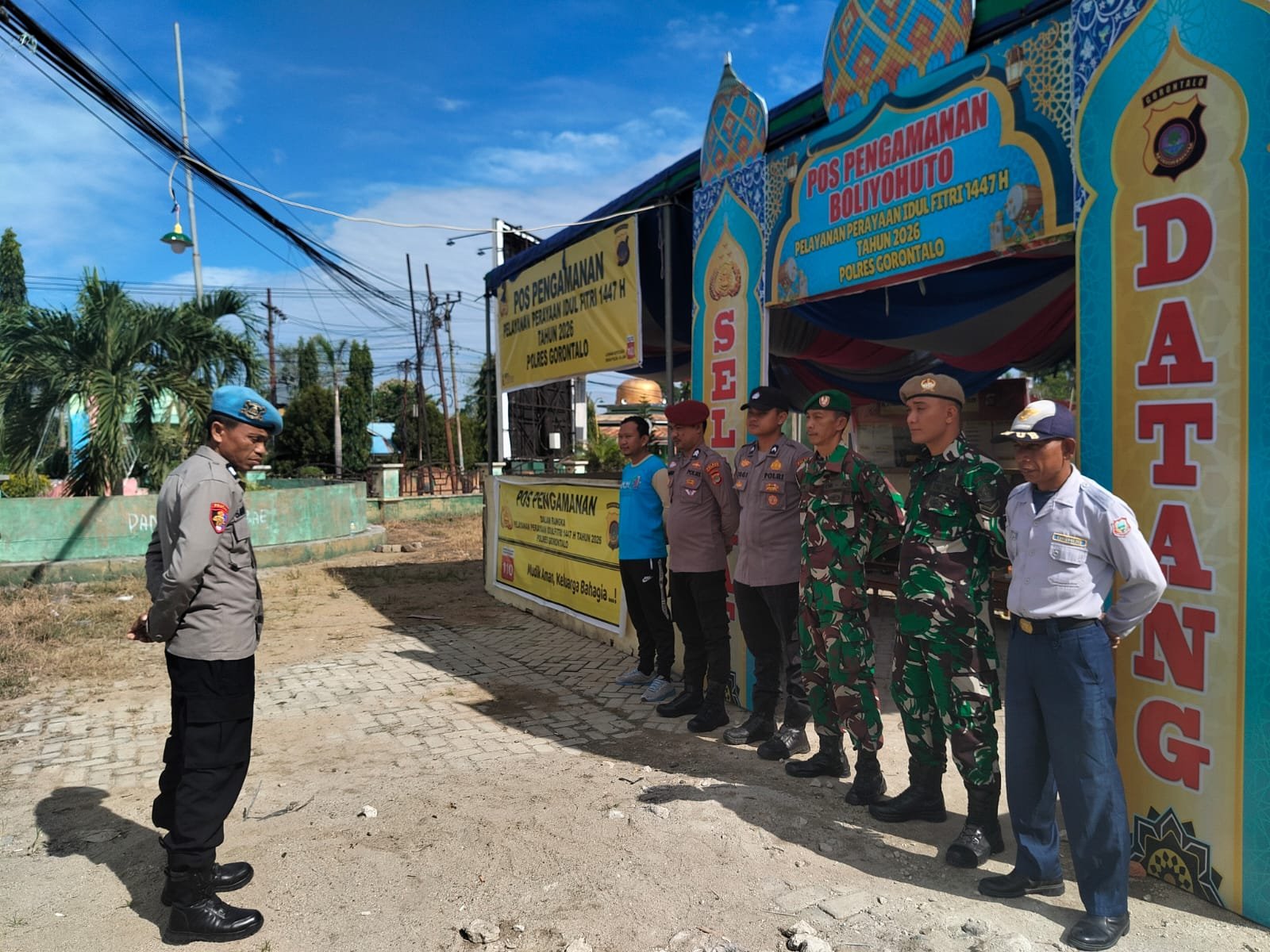 Personel Babinsa Koramil 1315-05 Boliyohuto Perkuat Pengamanan Idul Fitri 1447 H Tahun 2026