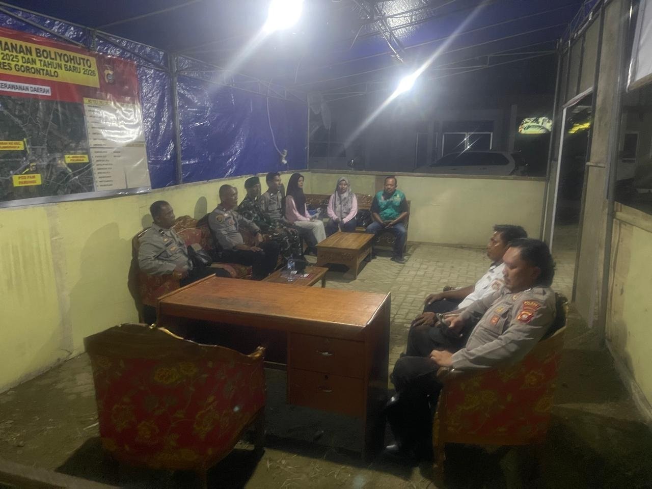 Gorontalo, 26 Desember 2025 – Saat itu, suasana Pos Simpang 3 Parung malam terasa sibuk. Sertu Dedik Ariyanto Babinsa Koramil 1315-05/Boliyohuto memimpin pengawasan Natal dan Tahun Baru, ditemani satu anggota Koramil, empat polisi, tiga tim medis, serta dua petugas Dishub.