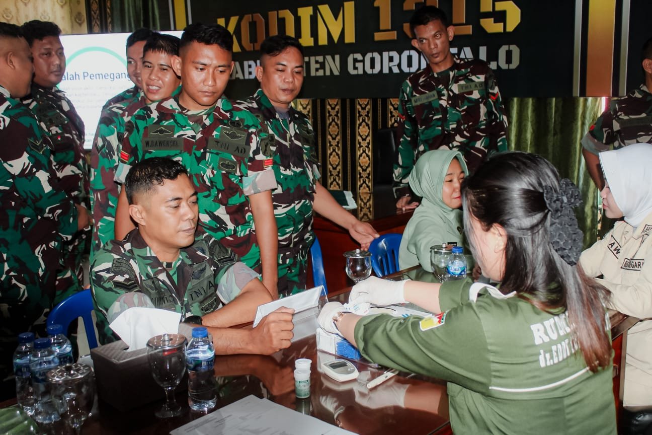 Gorontalo, 14 April 2026 – Penyuluhan dan pemeriksaan kesehatan bagi anggota Kodim 1315 Kabupaten Gorontalo berlangsung di Aula Makodim sejak pukul 09.30 Wita. Tim Rumah Sakit Tingkat IV Eddy Kaunang memberikan layanan langsung kepada prajurit dan keluarga dengan suasana tertib serta antusias. Kegiatan ini berfokus pada upaya menjaga kebugaran fisik prajurit secara berkelanjutan.