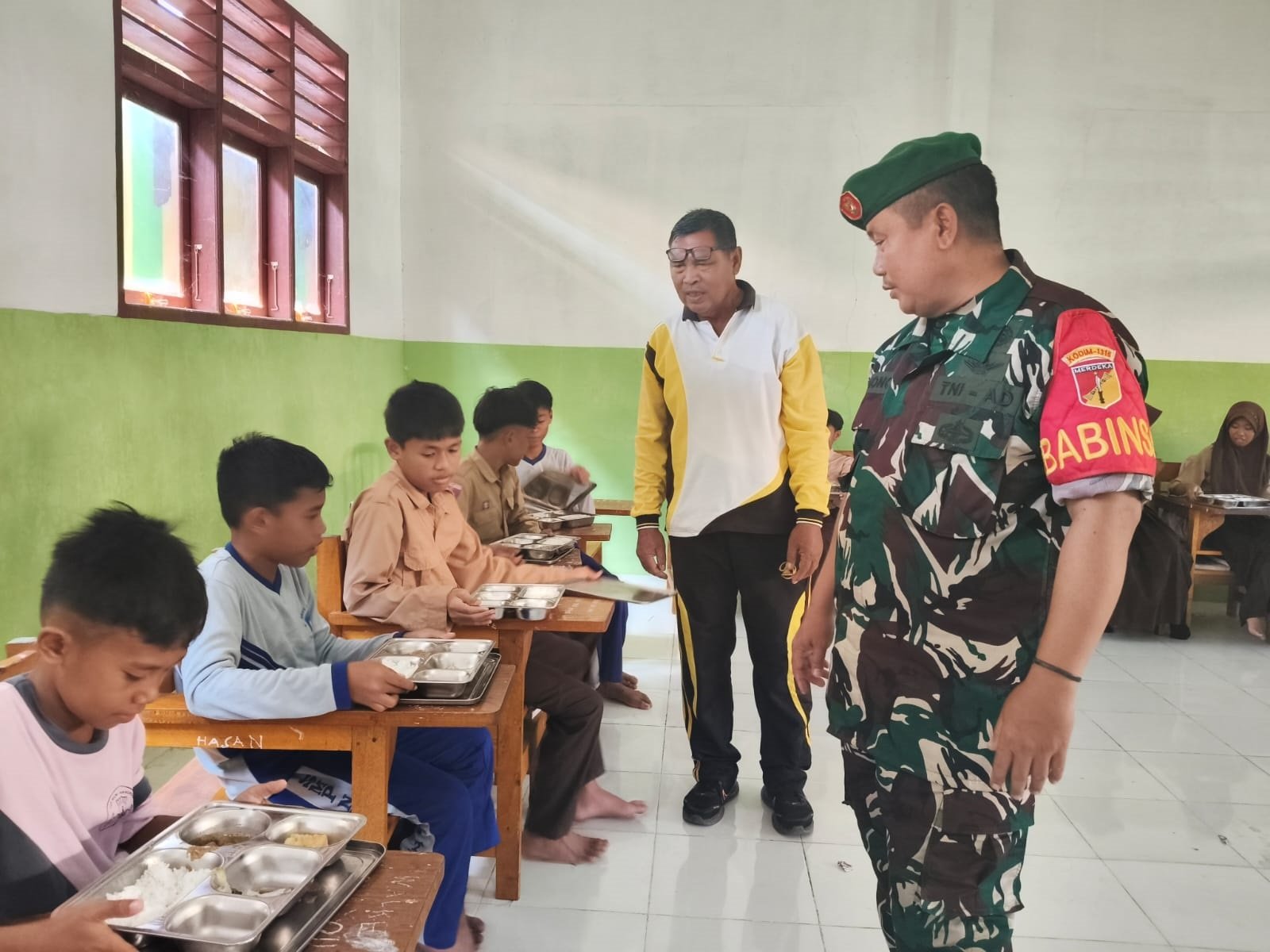 Babinsa dan tim pendamping mengatur alur distribusi, memantau anak-anak, dan menjaga ketertiban. Setiap siswa menerima makanan bergizi dengan aman dan tepat waktu, memastikan kegiatan berjalan sempurna.