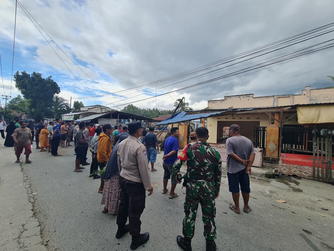 Di halaman rumah, aparat berjaga rapi. Instruksi terdengar bergantian, mengatur posisi setiap tahap. Dengan demikian, Babinsa menenangkan suasana yang tegang, menjadi penyejuk warga.