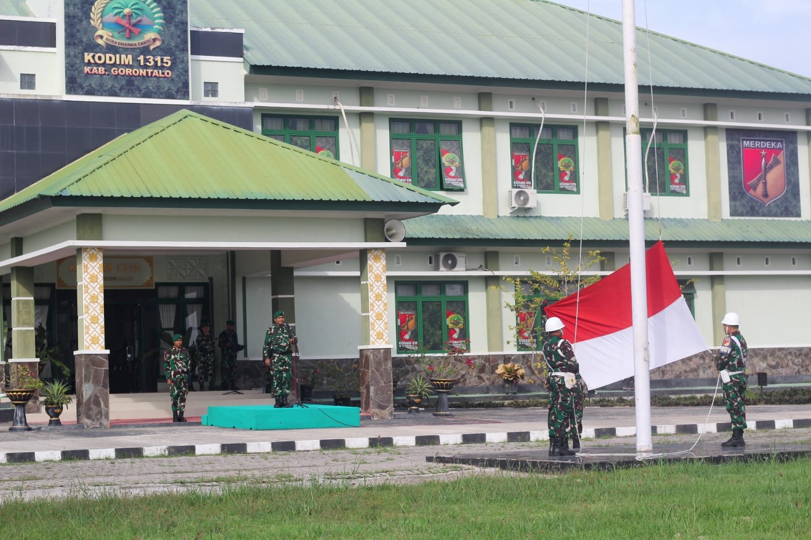 Sementara itu barisan pasukan terdiri atas kelompok perwira serta seluruh prajurit Kodim 1315 Kabupaten Gorontalo. Pengibaran bendera Merah Putih berlangsung sekitar tiga personel pengibar yang bergerak kompak. Selain itu, Pratu Muh. Aldi Nune mendampingi inspektur upacara selaku ajudan.