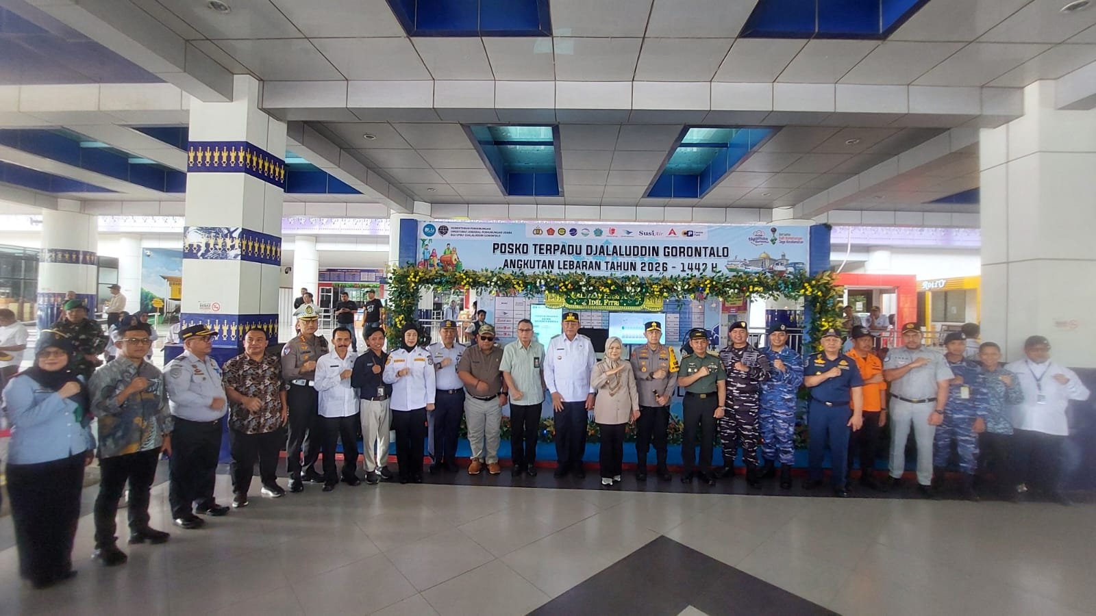 Gorontalo, 13 Maret 2026 – Apel Gelar Pasukan Posko Terpadu Angkutan Lebaran Tahun 2026 berlangsung pada area parkir Bandara Djalaluddin Gorontalo. Sementara itu Dandim 1315 Kabupaten Gorontalo Letkol Inf Julius Jongen Matakena, S.H. hadir bersama unsur pemerintah serta aparat keamanan.