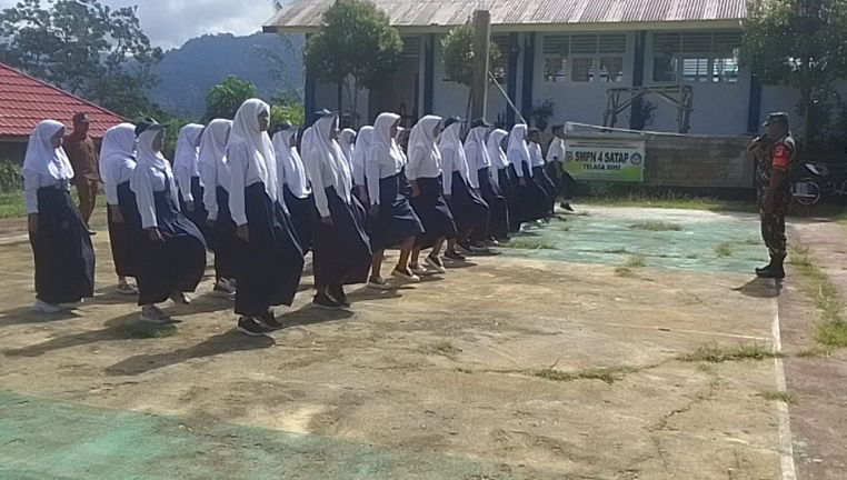 Telaga Biru, 13 Oktober 2025 — Suasana pagi di SMPN 4 Satu Atap Telaga Biru terasa berbeda. Sejak pukul 07.30 Wita, halaman sekolah dipenuhi semangat siswa yang berbaris rapi mengikuti aba-aba prajurit TNI dari Satgas TMMD Ke-126 Kodim 1315/Kabupaten Gorontalo.
