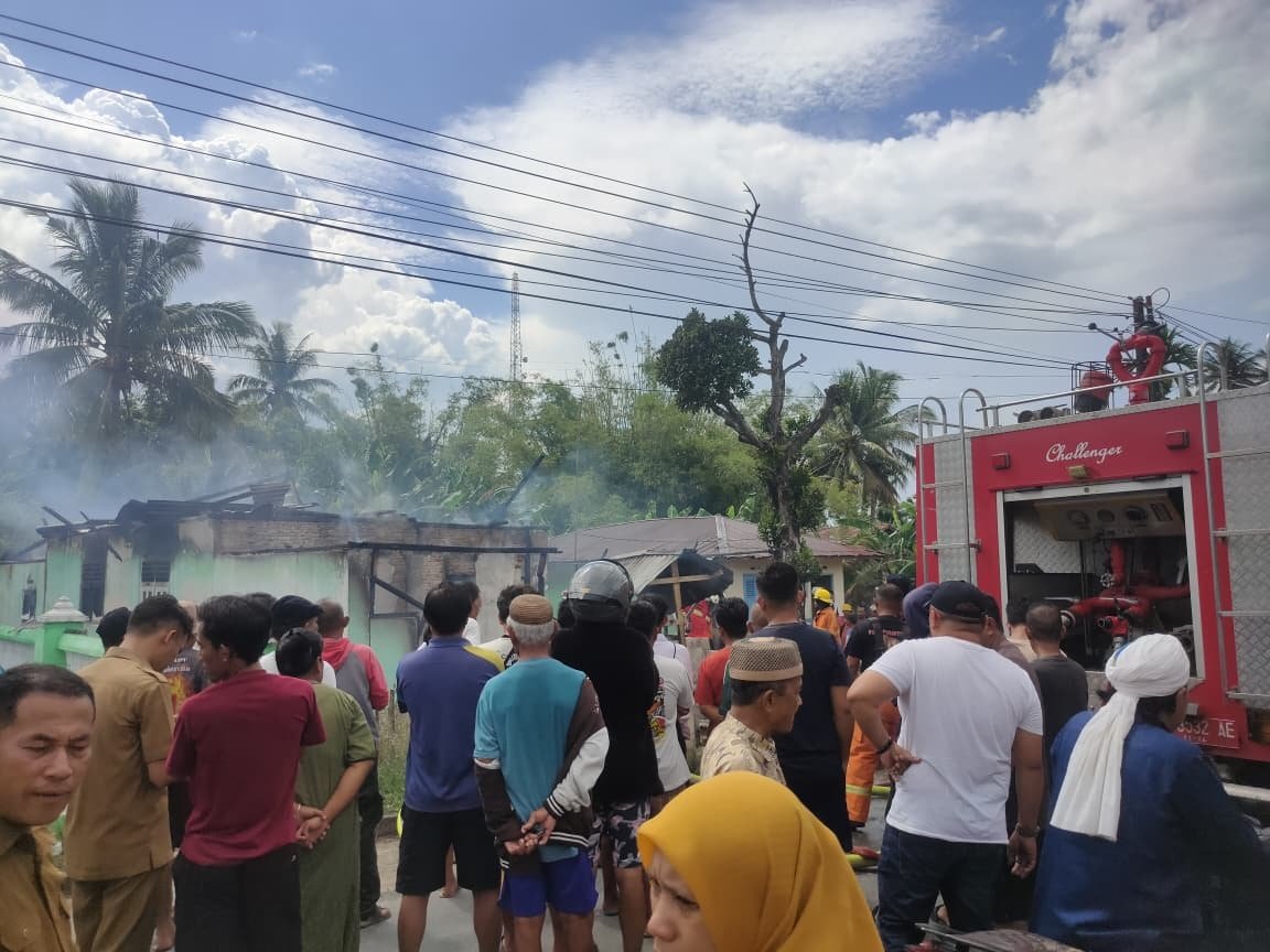 Tilaga Biru, 28 Oktober 2025 — Sekitar pukul 12.30 Wita, asap pekat membumbung dari rumah Agus Luhine. Warga yang sedang istirahat terkejut dan berlari keluar. Dengan cepat, kepanikan menyebar sambil menatap api yang menjilat atap rumah.