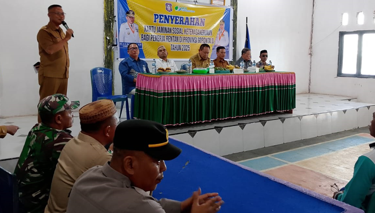 Asparaga, 07 Oktober 2025 – Saat masyarakat setempat berkumpul di lapangan desa untuk menyambut kegiatan penyerahan Kartu Jaminan Sosial Ketenagakerjaan bagi Pekerja Rentan Tahun 2025. Warga tampak antusias, sebagian datang lebih awal agar bisa menyaksikan langsung kehadiran Gubernur Provinsi Gorontalo, Dr. Ir. H. Gusnar Ismail, M.M., yang memimpin langsung jalannya acara penuh makna ini.