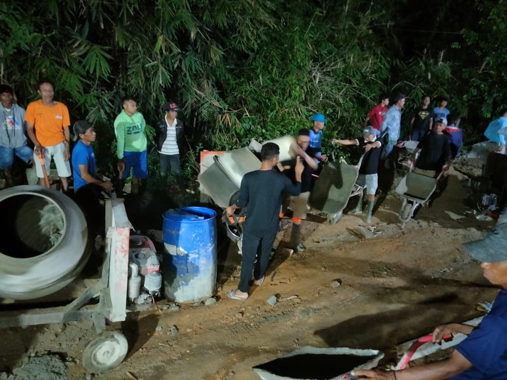 Malam hari lampu seadanya menerangi lokasi kerja, sementara warga dan Satgas TMMD bergotong-royong melawan dingin hingga larut. “Kami bekerja dengan hati, bukan karena waktu,” ujar salah satu anggota Satgas, menjadi nyala semangat di tengah hujan dan lumpur yang menempel di tanah.