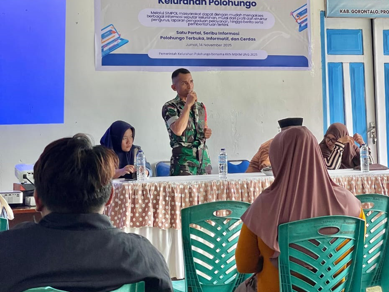 Di sisi lain, Sertu La Ode Usman, Babinsa Koramil 02/Limboto, mengamati kegiatan. Kehadirannya sebagai pendamping memastikan jalannya acara tertib dan aman. Selain itu, ia memberikan dukungan nyata kepada mahasiswa selama program KKN.