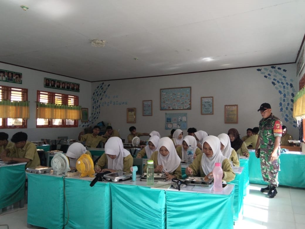 Sementara itu, para siswa tampak antusias menunggu giliran memperoleh makanan bergizi. Di sela kegiatan, Babinsa Serda Firman menyampaikan pesan penting tentang menjaga kesehatan agar semangat belajar terus tumbuh sepanjang waktu.