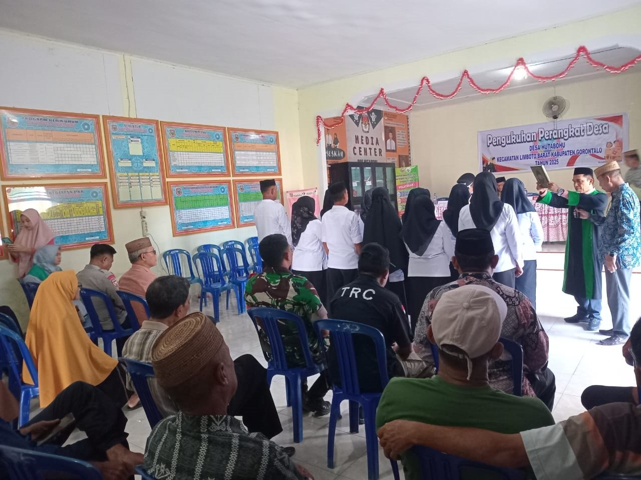 Menutup seluruh rangkaian acara, Camat Limboto Barat bersama Kepala Desa menandatangani berita acara pengukuhan sebagai tanda sah pelantikan. Momen tersebut disambut dengan doa bersama agar perangkat baru menjalankan amanah dengan penuh tanggung jawab.